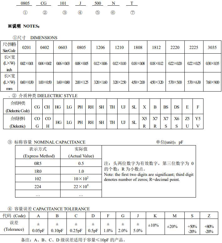 風(fēng)華貼片電容型號(hào)規(guī)格表示圖如下