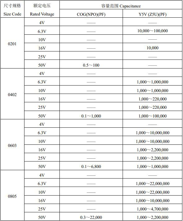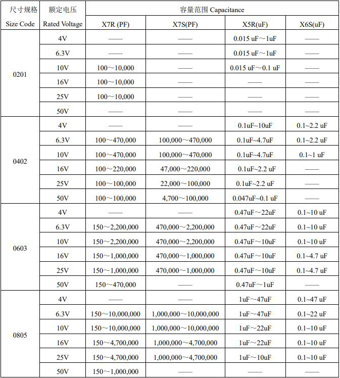 風(fēng)華貼片電容參數(shù)選購(gòu)圖表如下