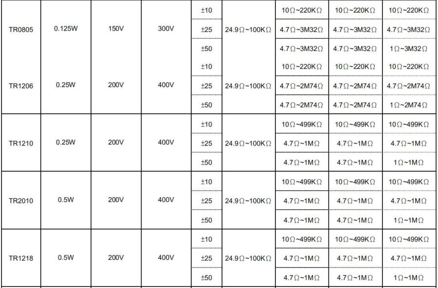 天二貼片高壓電阻規(guī)格書(shū)參考圖詳解如下