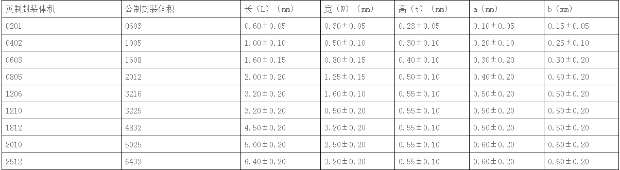 常見貼片電感九種封裝尺寸規(guī)格如下表