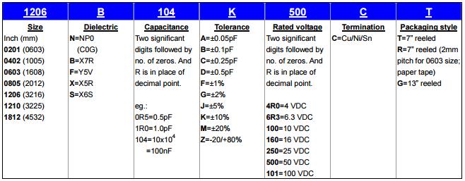 T :表示包裝代號 T:7英寸卷帶Q:10英寸卷帶 G:13英寸卷帶 H:13''卷軸50Kpcs僅用于0402 B:散裝 D:7''卷軸20Kpcs僅用于0402 A:僅7“卷軸15Kpcs為0402
