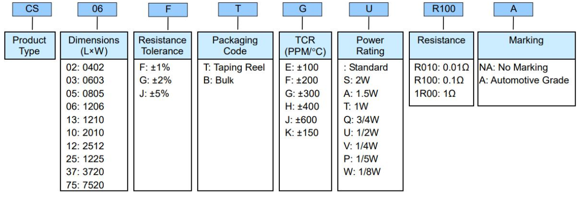 光頡(viking)電阻料號(hào)命名識(shí)別圖如下