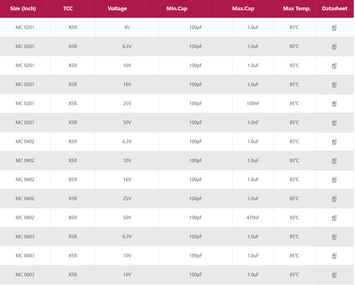 信維電容-信維貼片電容 產(chǎn)品型號:0201 0402 0603 0805