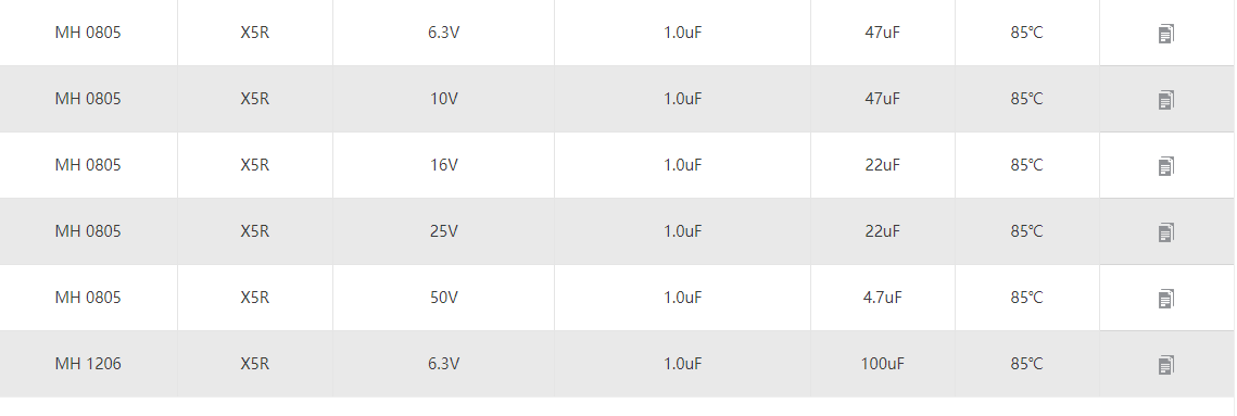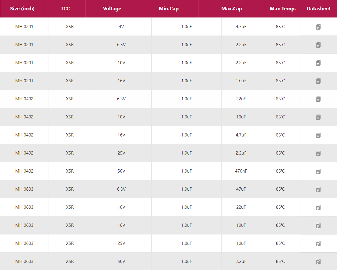 • MH:H cap/X5R 通用電容